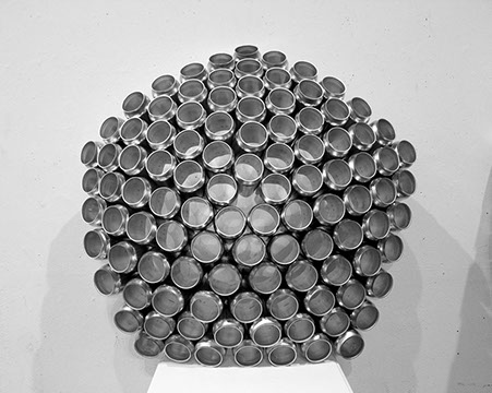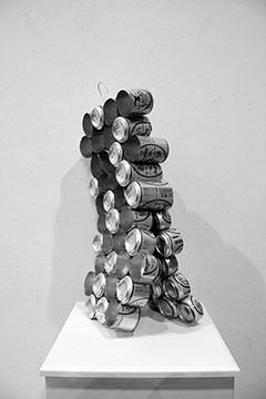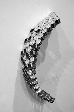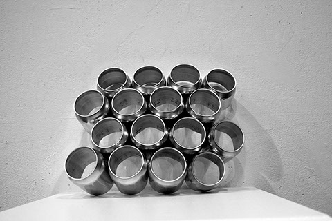 Candid is a pavilion which emerged out of concept and criticism from late nights of architecture school. There are two sides to architecture graduate school. On the one hand it is a great experience where you spend 3 years learning, and exploring. We design the un-buildable, and study the relationship of architecture and society through every possible angle. But on the other hand, architecture school has the capacity to bring you to your breaking point at any time. It often pushes you to places you never thought you would go: the cold-hard floor at 6am, ludicrous breakthroughs, and criticism from intimidatingly qualified minds. Candid is the solution to making the two sides work together. It is a living pavilion, where you can work, sleep, and socialize. The pavilion has three parts, one for each program that inhabits it. The first program is work. You go to architecture school to learn and study. Candid supplies an extra pin-up space where work can be completed and displayed. The cans were unrolled to create flat panels, which created a smooth surface, while the can tops become the structural components of the wall. The second program which Candid fulfills is sleeping. In order to create a bed, the cans were cut in two at different lengths of the can so that various heights could be achieved. The half cans were then arranged in an ergonomic fashion so that sleeping could be as comfortable as possible. From the bed, the cans continue up and switch orientation and grouping until they form a hex-grid. The hex-grid is the base method from which the pavilion gets its form. Growing out from the hex-grids, the cans move out into walls which curve and twist. The wall curvature can change based on the orientation of the can. The walls then fall down and create the seating area, which is where the third program, socialization, occurs. The walls fall and split open over the foundations which form the structural component of the seating area.