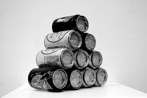 Candid is a critique. It is a satire. It is a celebration. It stands tall and bright, and rises out of concept and criticism from late nights of architecture school. If graduate school is for committed minds, it must be said that architecture school is for minds that should be committed. We are in an asylum of innovation and peculiarity -- using the latter to drive the former. It often pushes us to places we never thought we would go: the cold-hard floor at 6am, ludicrous breakthroughs, and criticism from intimidatingly qualified minds. We use every ounce of our energy and sanity to chase ideas that may never be more than pages in a sketchbook or a project in a portfolio. This schooling to which we have committed to, takes every ounce of energy, time, and money from us. Surely architects are human beings, but we are not treated like them, we are not allowed to live like them. This is the sad fact of an architecture student. It is intellectual hazing. We work, we sleep, and we socialize with our classmates. We never have enough time for any of the three. Work is in the studio, sleep is at home and beer with friends is always maybe tomorrow. How can we do them all when there isn’t time to go between? Candid is how. It is a living, performing machine that enables the primary aspects of an architecture student’s life. Tired? Candid has a bed of cans for you to sleep on. Where to pin up your work? Candid has a wall of cans for you to use. Want to catch up with friends? Candid has benches for you to sit on. Candid is a functioning machine designed to demonstrate the nature of an architecture student’s life.