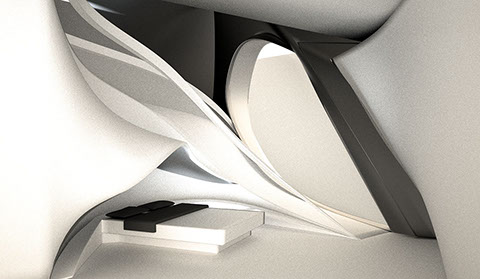 The use of light and shadows is controlled throughout the formation to allow for transition from the bottom of the building to the top as the unit and programs change. As the building grows, units curve up so that the windows take over the roof, allowing for infiltration of light from multiple angles. With the light being allowed in through multiple angles, nearly no shadows are cast within the unit. This allows for larger units with a different program than the private units at the base of the building.